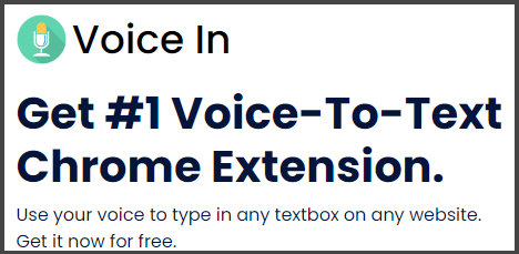 Voice In, dictanote.co/voicein, a free browser add-in where you can use your voice , stats dictate to any text box on any website.