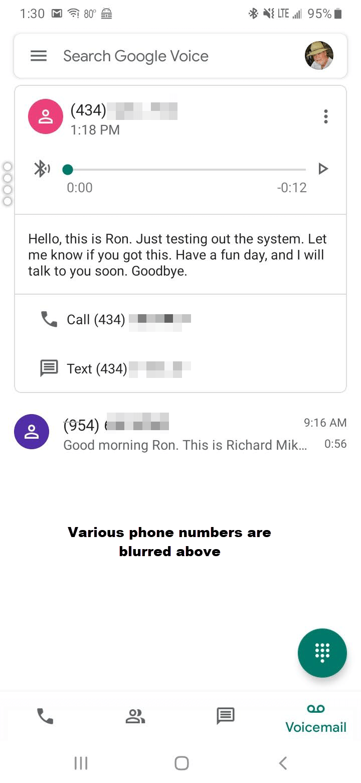 The final thing I will mention today about Google Voice is that you may also set it to send your voicemails to your Gmail account. When you get a voicemail, you will receive the recording attached to an email. But the best part (in my opinion) is that you do not have to listen to it. You will also get quite accurate transcriptions of the calls as the email text. Most of them I do not even listen to as the transcript is usually spot-on; however, some names and company names are not always perfect.